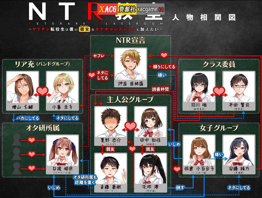 这是由【緑の帝国】23年4月在DLsite上发布的一款校园SLG游戏。现已经由“NING”个人制作发布了精翻,完成汉化版,文本质量不错。内容讲述帅哥黄毛转校生到来第一天就发布了要睡走全班人的女朋友~男主竭力保卫自己的青梅竹马女朋友不被黄毛寝取的刺激攻防战略。游戏里各角色关系错综复杂,玩法细致,并且画风社保实用!
